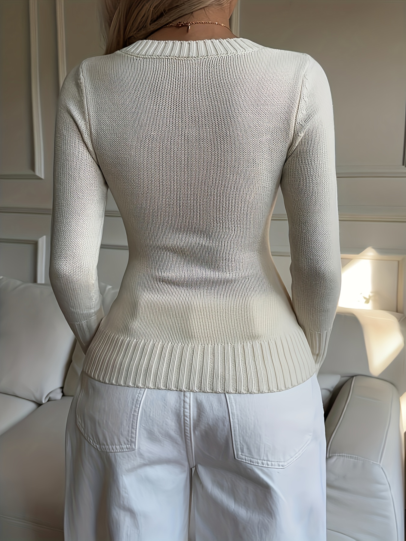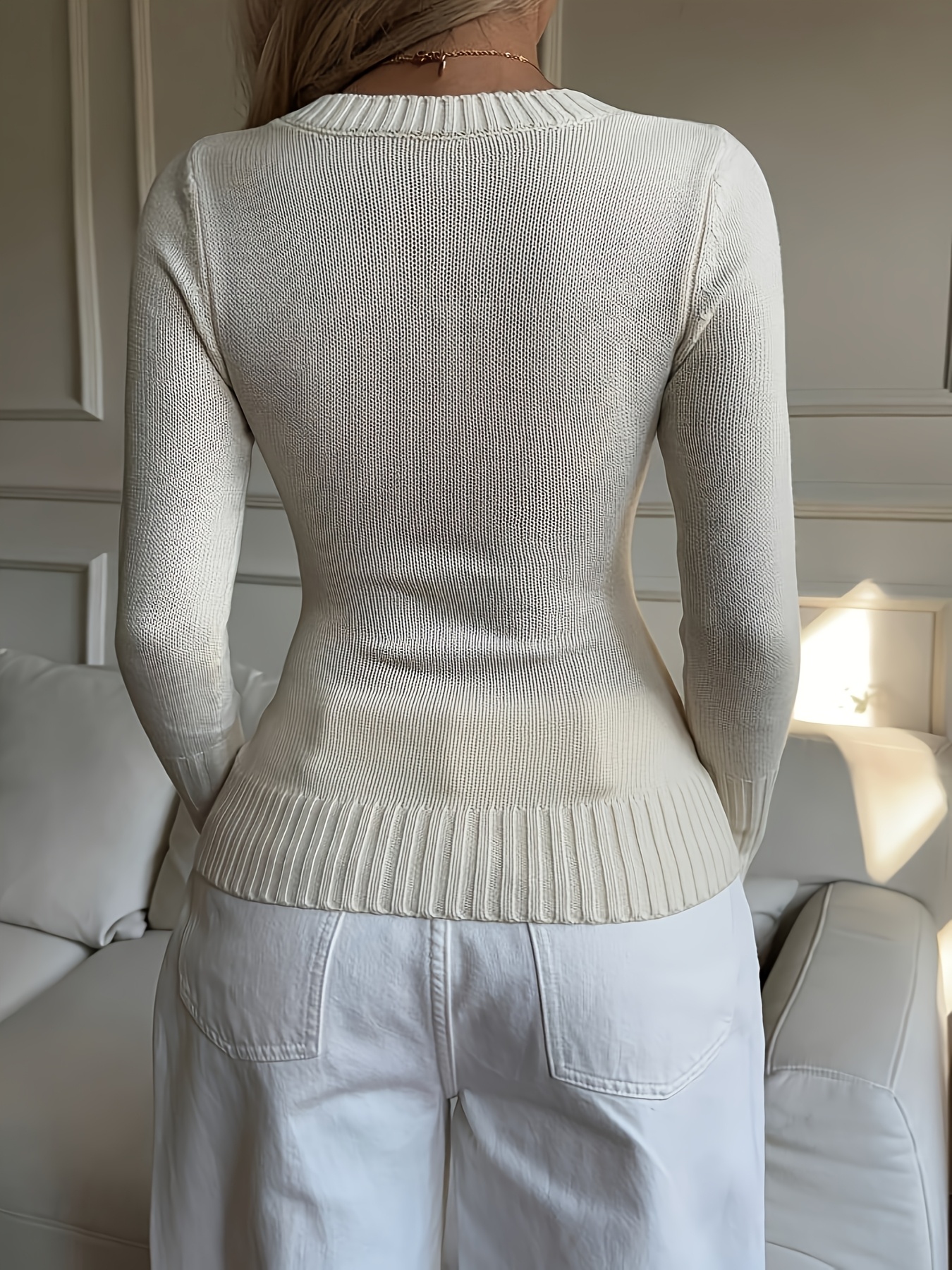Elegant Ladies' V-neck Long Sleeve Slim Fit Cardigan | Autumn/Winter Collection with Embroidered Details