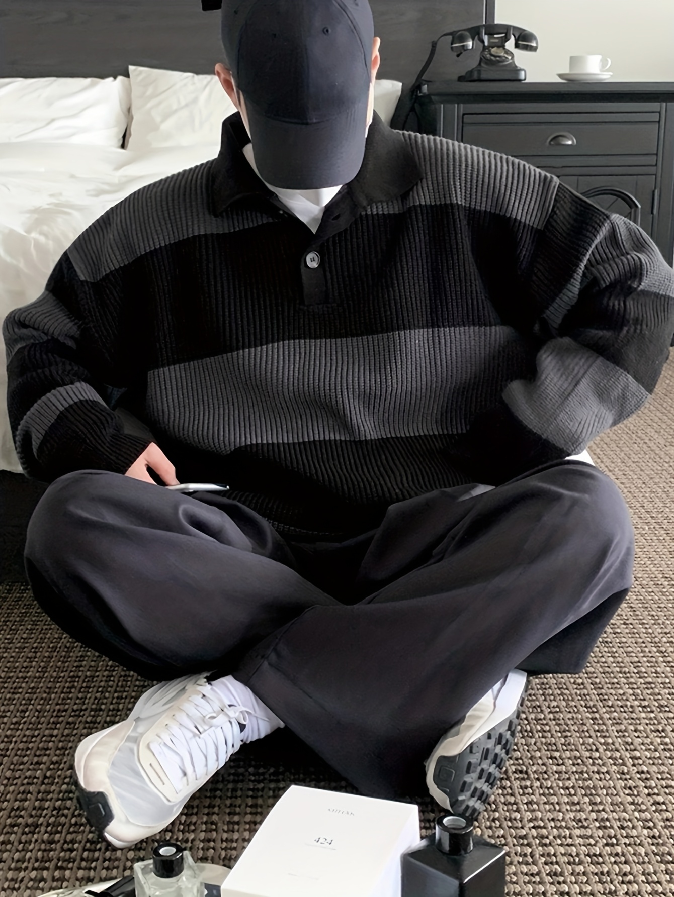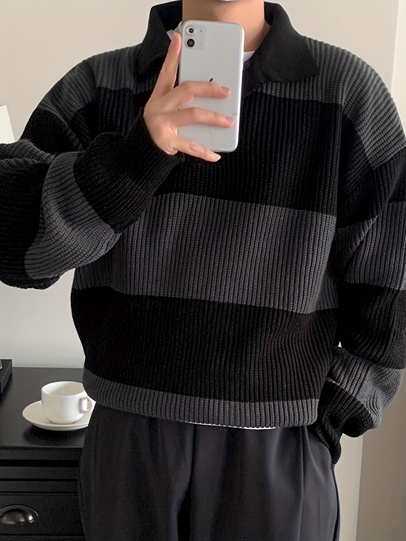 Men's American Street Korean Business Commuter Trendy Casual Versatile Striped Collar Pullover Knit Sweater